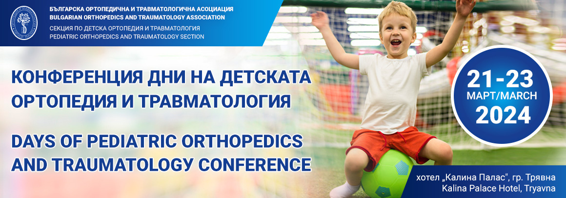Конференция „Дни на детската ортопедия и травматология“ ще се проведе в периода 21-23 март 2024 г. в хотел „Калина Палас“, гр. Трявна. Събитието ще се проведе в традиционната си присъствена форма.